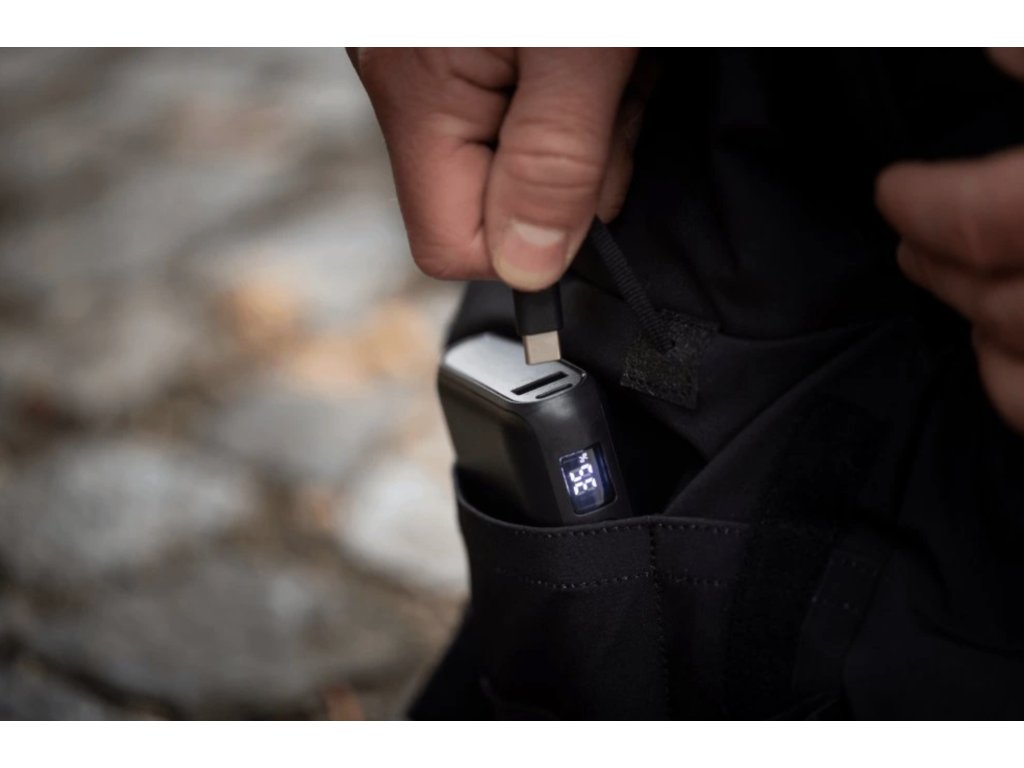 Integrovaný topný prvek na bázi grafenových vrstev s regulací výkonu ve třech stupních. Napájení bezdrátově z nabíjecí baterie, výdrž až 7 h na jedno nabití. Na maximální výkon až 4 hodiny.